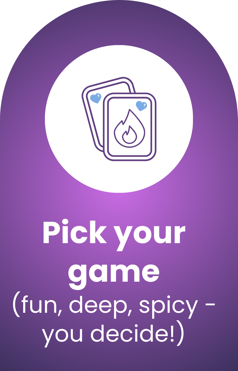 Our couples games help you reconnect, flirt, and have actual fun together—without having to plan a thing.